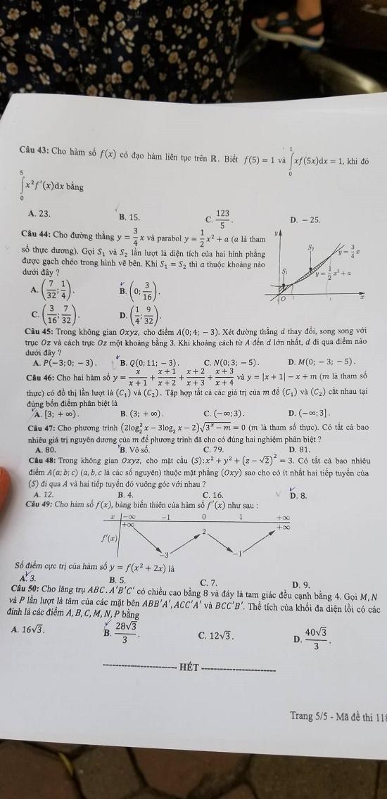 - Thi THPTQG 2020: Đề thi và đáp án môn Toán mã đề 115