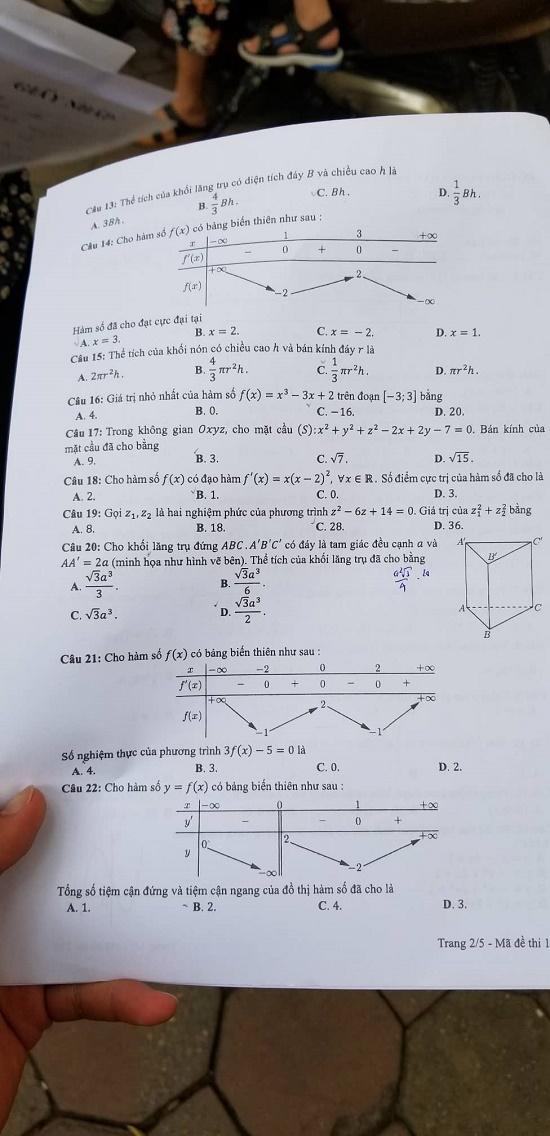 - Thi THPTQG 2019: Đề thi và đáp án môn Toán mã đề 122