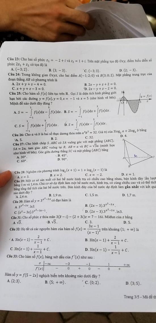 - Thi THPTQG 2020: Đề thi và đáp án môn Toán mã đề 124