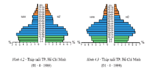 Câu 2: Quan sát tháp tuổi của Thành phố Hồ Chí Minh qua các cuộc Tổng điều tra dân số năm 1989 và năm 1999, cho biết sau 10 năm: