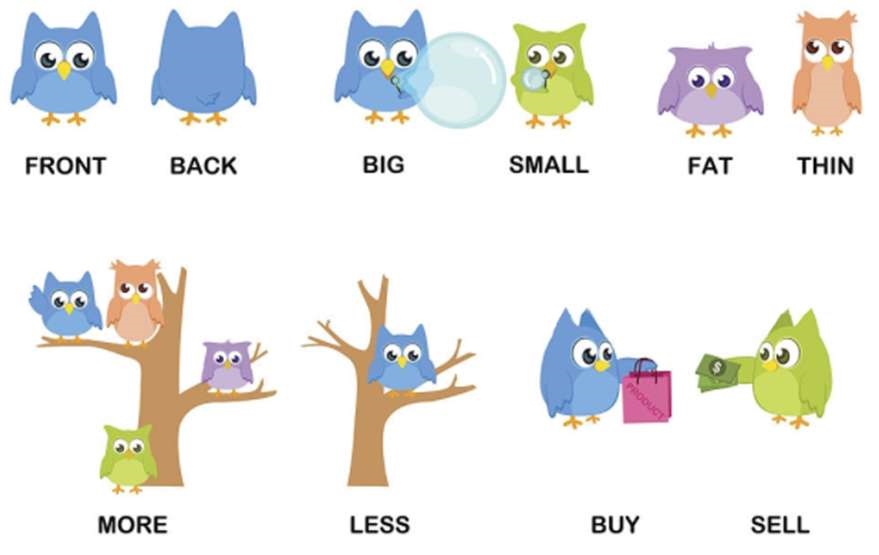 Ví dụ: dài - ngắn; cao - thấp; xinh đẹp - xấu xí; to - nhỏ; sớm - muộn; yêu - ghét; may mắn - xui xẻo; nhanh - chậm;…