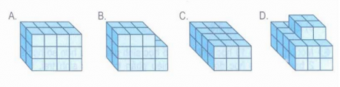 Người ta xếp các hình lập phương nhỏ thành các khối. Trong các khối dưới đây, khối nào có chứa nhiều hình lập phương nhất?