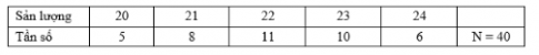 Câu 3: Sản lượng lúa (đơn vị là tạ) của 40 thửa ruộng thí nghiệm có cùng diện tích được trình bày trong bảng số liệu sau: