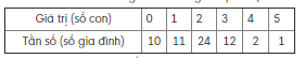 Câu 12: Điều tra số con của mỗi gia đình trong khu phố A, nhân viên điều tra đã ghi được bảng sau: