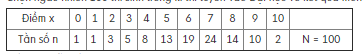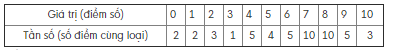 Câu 12: Điểm kiểm tra môn Toán của 50 học sinh lớp 10E được ghi trong bảng sau: