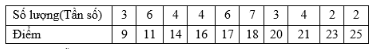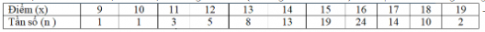 Câu 11: 41 học sinh của một lớp kiểm tra chất lượng đầu năm thang điểm 30. Kết quả như sau: