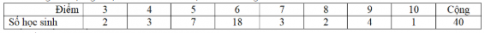 Câu 8: Cho bảng số liệu ghi lại điểm của 40 học sinh trong bài kiểm tra 1 tiết môn toán