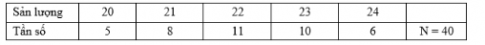 Câu 9: Sản lượng lúa (đơn vị là tạ) của 40 thửa ruộng thí nghiệm có cùng diện tích được trình bày trong bảng số liệu sau: