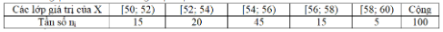 - C. Tần số của lớp [52; 54 ) là 35
