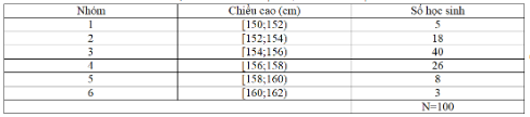 Câu 2: Điều tra về chiều cao của học sinh khối lớp 10, ta có kết quả sau: