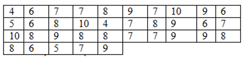 | Tần số (n) | 2 | 3 | 8 | 10 | 7 | N = 30 |