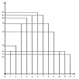 Cho biểu đồ nhiệt độ trung bình hàng tháng ở một địa phương trong vòng một năm với Ox là tháng, Oy là nhiệt độ trung bình (độ C)