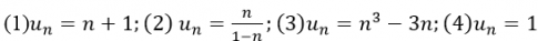 - B. (1) dãy đơn điệu tăng; (2) là dãy đơn điệu giảm; (3) là dãy đơn điệu tăng;(4) là dãy không đơn điệu