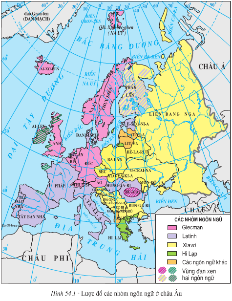Câu 11: Quan sát hình 54.1 (SGK) cho biết các nước thuộc nhóm ngôn ngữ La tinh?