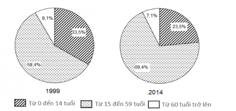 - A. Sự thay đổi cơ cấu dân số phân theo nhóm tuổi năm 1999 và 2014.