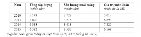 SẢN LƯỢNG THỦY SẢN VÀ GIÁ TRỊ XUẤT KHẨU THỦY SẢN CỦA NƯỚC TA,GIAI ĐOẠN 2010 -2015