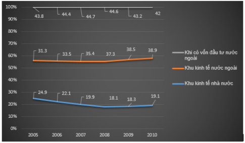 Khi có vốn đầu tư nước ngoài | 43.8 | 44.4 | 44.7 | 44.6 | 43.2 | 42 |