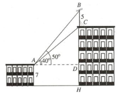 và $40^{\circ}$ so với phương nằm ngang (như hình vẽ bên). Chiều cao của tòa nhà (được làm tròn đến hàng phần mười) là: