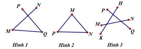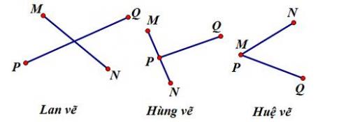 Câu 3: Thầy giáo yêu cầu "vẽ đoạn thẳng MN cắt đoạn thẳng PQ". Ba bạn Lan, Hùng, Huệ vẽ như sau: