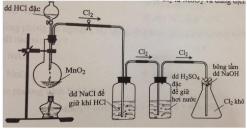 Câu 17: Cho hình vẽ mô tả thí nghiệm điều chế khí Cl2 từ MnO2 và dung dịch HCl: