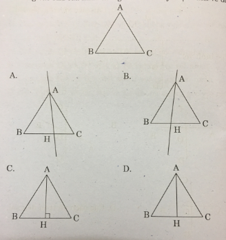 Câu 14: Vẽ đường cao AH của hình tam giác ABC. Hãy chọn cách vẽ đúng: