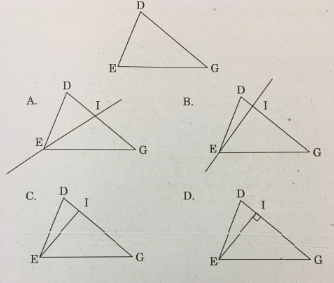 Câu 20: Cần vẽ đường cao EI của hình tam giác DEG. Hãy chọn cách vẽ đúng trong các cách vẽ sau: