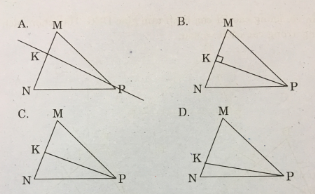 Câu 12: Cần vẽ đường cao PK của hình tam giác MNP. Hãy chọn cách vẽ đúng: