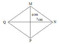 Câu 13: Tính diện tích của hình thoi MNPQ, biết MP = 7cm, NQ = 4cm