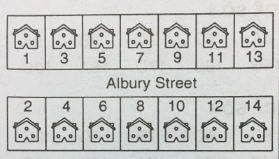 Câu 19: Người ta đánh số nhà ở phố Albury như sau: