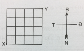 - D. đi về phía Bắc 4 ô, rồi phía Đông 3 ô
