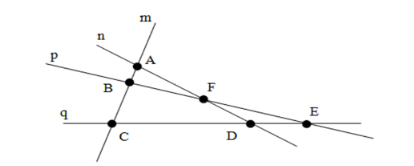 Trên hình vẽ, điểm F nằm trên bao nhiêu đường thẳng?