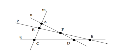 Trên hình vẽ, có bao nhiêu đường thẳng đi qua ba điểm?