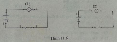 Câu 13: Chọn câu trả lời đúng: Trong hình 11.6, chiều dòng điện trong sơ đồ mạch điện nào đúng?