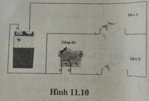 Câu 14: Chọn câu trả lời đúng: Cho mạch điện như hình 11.7. Khi bật công tắc đèn nào sáng?