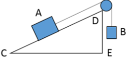Câu 8: Người ta dùng vật B kéo vật A (có khối lượng mA = 10 kg) chuyển động đều đi trên mặt phẳng nghiêng như hình bên. Biết CD = 4 m, DE = 1m. Bỏ qua ma sát, vật B phải có khối lượng bao nhiêu?