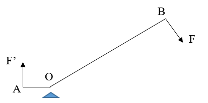 Câu 16: Người ta dùng một xà beng có dạng như hình vẽ để nhổ một cây đinh cắm sâu vào gỗ. Biết OA = 25cm, OB = 200cm. Khi tác dụng một lực F = 100N vuông góc với OB tại đầu B ta sẽ nhổ được đinh. Tính lực giữ đinh của tấm gỗ?