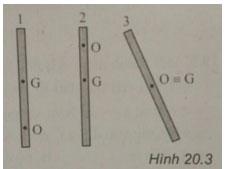 Câu 4: Một cái thước có trọng tâm ở G, được treo vào một cái đinh nhờ một lỗ O như ở hình 20.3. Trong mỗi Hình 1, 2 và 3, thước ở trạng thái vân bằng nào?