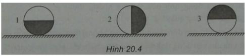Câu 5: Một bán cầu bằng đồng (được vẽ màu sẫm) và một bán cầu bằng nhôm gắn với nhau thành một quả cầu. Hãy cho biết trạng thái của quả cầu ở ba vị trí trên hình 20.4.