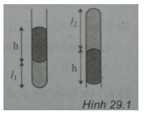 Câu 19: Một ống thủy tinh tiến diện đều S, một đầu kín một đầu hở, ở giữa có một cột thủy ngân dài h = 16 cm (Hình 29.1). Khi đặt ống thẳng đứng đầu hở ở trên thì chiều dài của cột không khí là l1 = 15 cm. Áp suât khí quyển po = 76 mmHg. Khi đặt ống thủy tinh thẳng đứng, đầu hở ở phía dưới thì cột không khí trong ống có chiều dài l2 bằng?