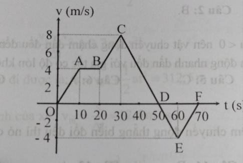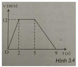 Câu 23: Hình 3.4 diễn tả đồ thị vận tốc - thời gian của một chiếc xe chuyển động thẳng. Trường hợp nào sau đây là đúng?
