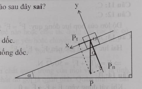 tác dụng vào vật nằm trên mặt phẳng dốc nghiêng như hình vẽ. Phân tích $\overrightarrow{P} = \overrightarrow{P_{t}}+\overrightarrow{P_{n}}$. Kết luận nào sau đây là sai?