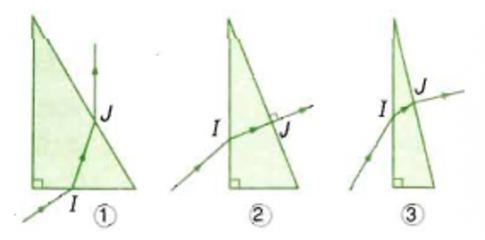 Câu 6: Có ba trường hợp truyền tia sáng qua lăng kính như hình vẽ. Ở các trường hợp nào sau đây, lăng kính không làm tia ló lệch về phía đáy?