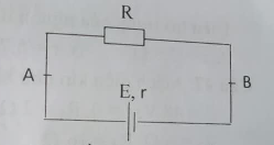 . Mạch ngoài gồm một ampe kế có $R_{A}$=0 mắc nối tiếp với một điện trở $R=3\Omega $. Biết ampe kế chỉ 3A, suất điện động E có giá trị bằng