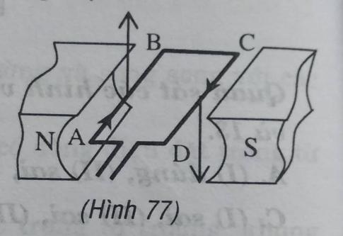 Câu 18: Một khung dây dẫn hình chữ nhật có dòng điện chạy qua được đặt trong từ trường giữa hai nhánh của một nam châm hình chữ U. Khung dây sẽ quay đến vị trí nào thì dừng lại?