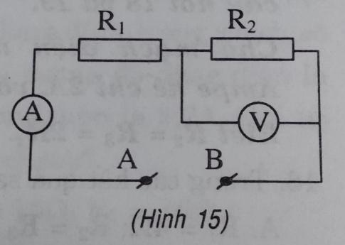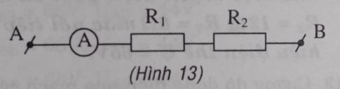 Câu 7: Hai điện trở R1, R2 và ampe kế được mắc nối tiếp vào đoạn mạch A, B như hình 13. Cho R1 = 5