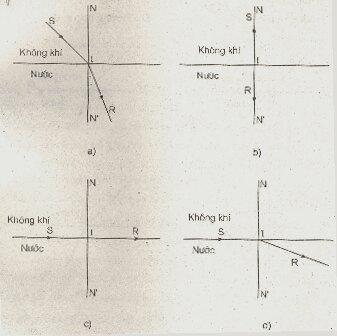 Câu 15: Chiếu một tia sáng SI đi từ môi trường không khí đến môi trường nước. Hình vẽ nào sau đây không đúng?