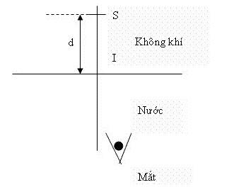 Câu 13: Một điểm sáng S cách mặt nước một khoảng d, một thợ lặn ở dưới nước nhìn điểm sáng S sẽ thấy điểm sáng thay đổi thế nào so với trên bờ?