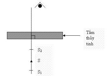 - D. Ở vị trí S2, xa tấm thủy tinh hơn S