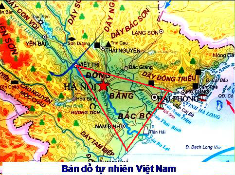 - Đồng bằng Bắc Bộ có dạng hình tam giác có đỉnh ở Việt Trì và cạnh đáy là đường bờ biển.