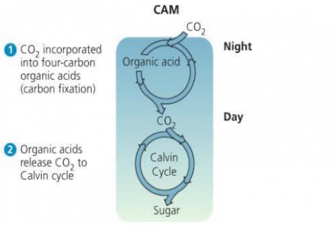 - Quá trình quang hợp ở thực vật CAM tương tự như thực vật C4, chỉ khác ở thời gian thực hiện:
